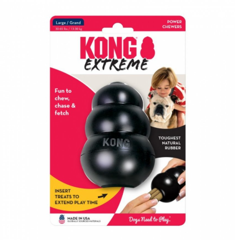 El Kong Extreme Juguete para perros está compuesto de un cuacho natural más resistente en comparación con otros kong(puppy, classic, senior). Está diseñado para los masticadores más tenaces, aporta beneficios y ayuda a satisfacer las necesidades de los perros. La exclusiva fórmula de caucho ultra duradero completamente natural de Kong está diseñada para masticadores decididos, y sus rebotes erráticos satisfacen las necesidades de cualquier perro. Rellénelo con trozos de alimento balanceado o snacks y colóquele un toque de mantequilla de maní para que sea más atractivo.